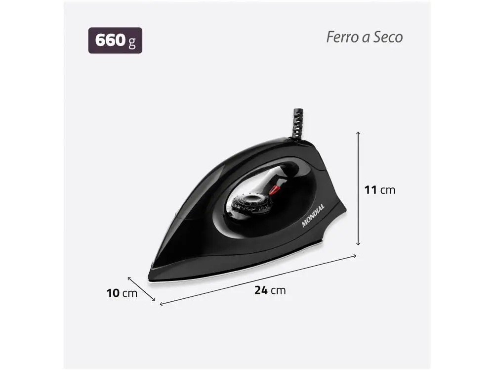 Elegante na cor preta, é um ferro moderno, prático e durável — ideal para quem busca qualidade Mondial com desempenho superior no dia a dia.